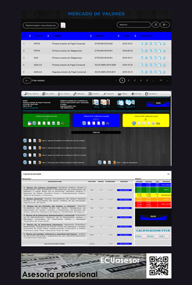 Adicionalmente, manejamos la obtención de créditos bancarios, microcrédito, cooperativas, inversiones, emisión de obligaciones, papeles comerciales, facturas comerciales, acciones, notas de crédito, a través del mercado bursátil. A su vez, ofrecemos asesorías de estructuración de negocios fiduciarios administrativos, inversión, garantía, inmobiliarios, titularización y encargos fiduciarios.